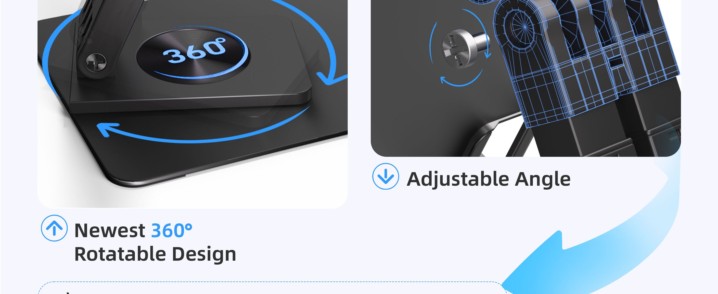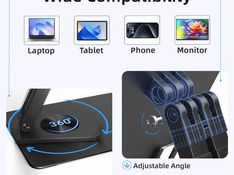 - Enjoy unparalleled flexibility with full horizontal rotation and a dual-shaft design that allows for 180° angle and height adjustments. This versatility lets you effortlessly position your device for the perfect viewing angle in any scenario.