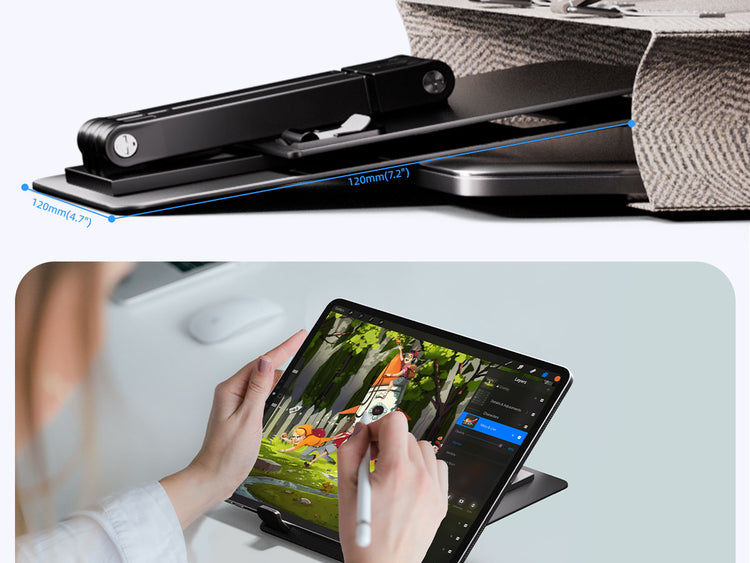 - Engineered for durability and everyday portability, this stand combines a sturdy steel construction with a compact form factor. It provides reliable protection against slips and scratches, making it the perfect on-the-go companion for your devices.