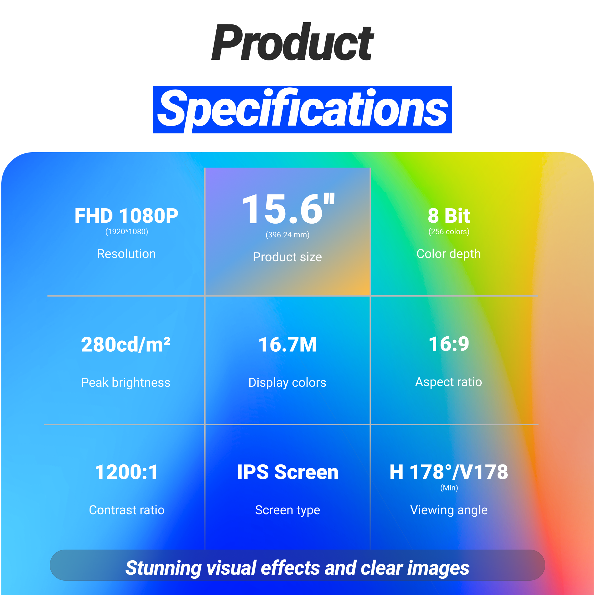 Imagine a seamless dual-screen setup that follows you anywhere. This 15.6” portable monitor makes it a reality, delivering vibrant 1080p clarity to streamline multitasking and bring your projects to life. Reclaim your freedom to work and create—without limits.