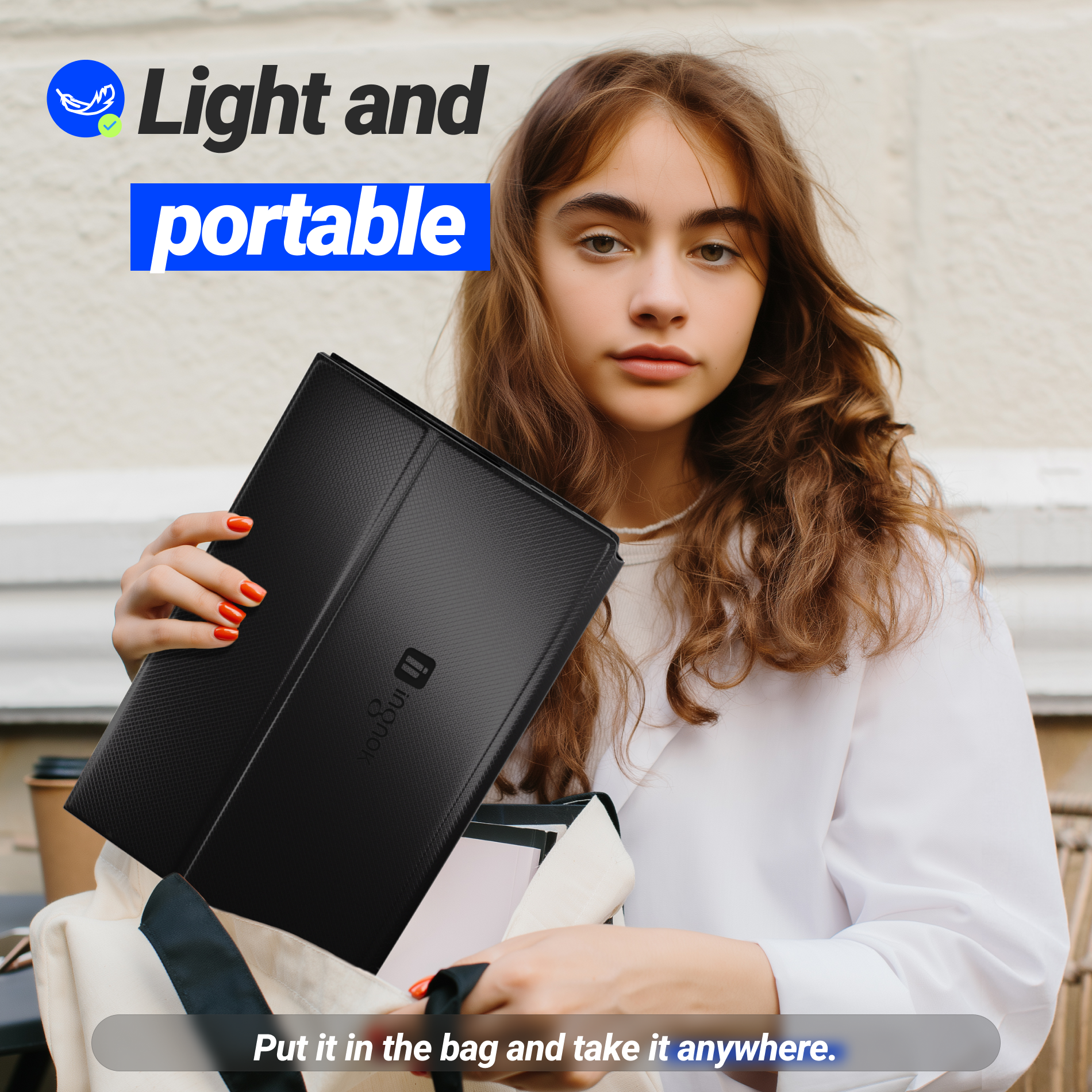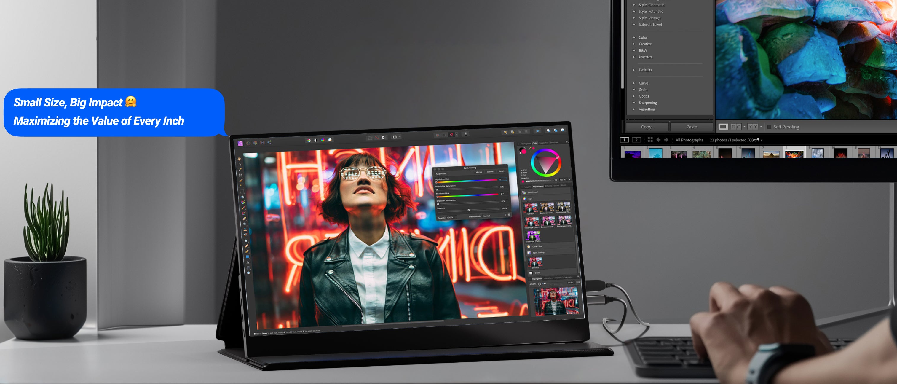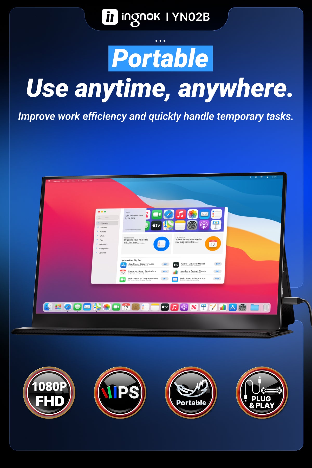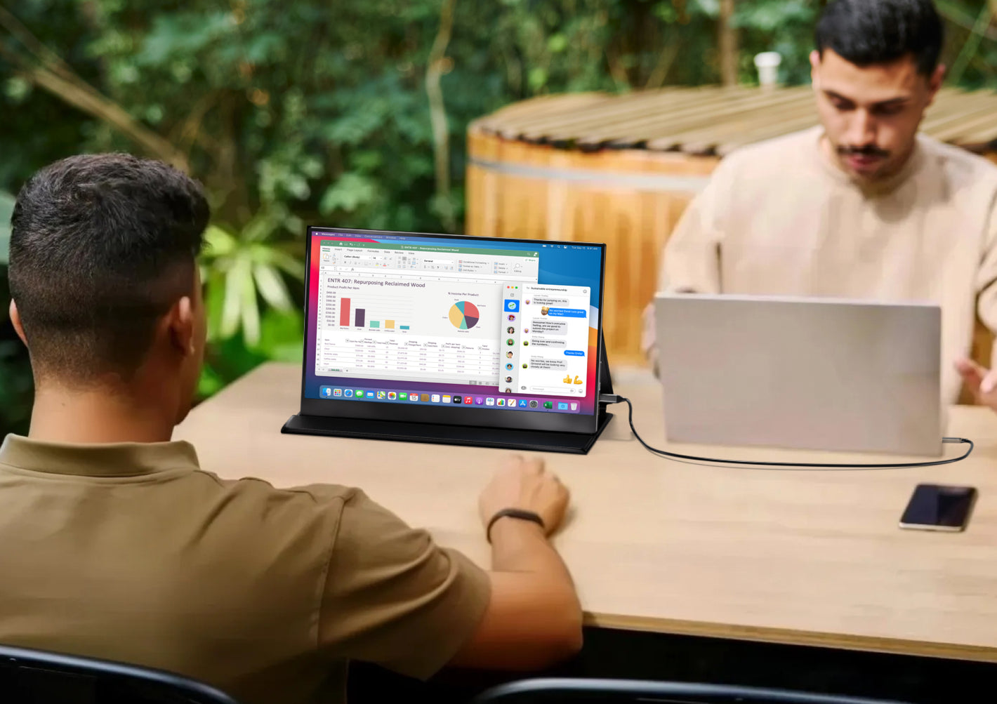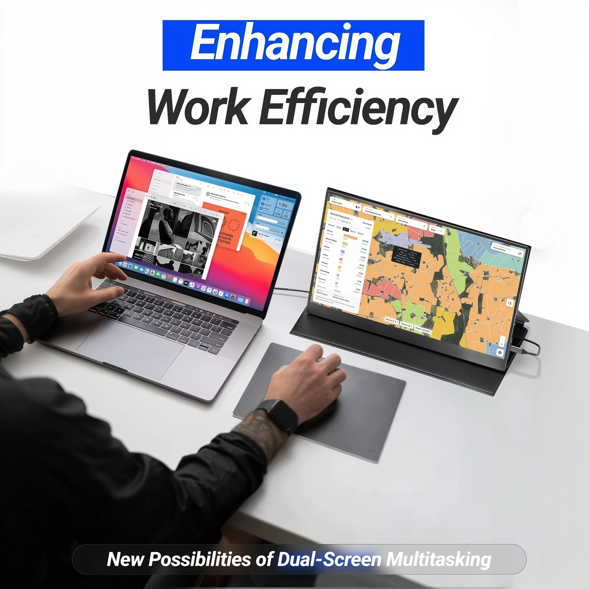 Boost your productivity by extending your laptop with a portable monitor. It reduces the need for constant window switching, streamlines multitasking, and helps you communicate more efficiently in meetings or daily work. -
