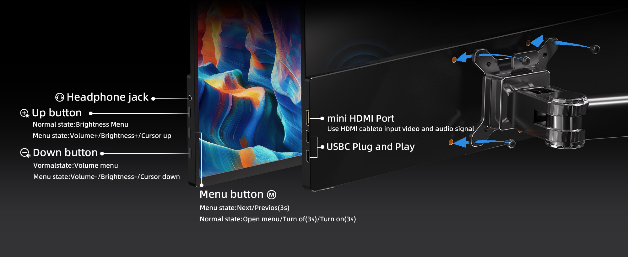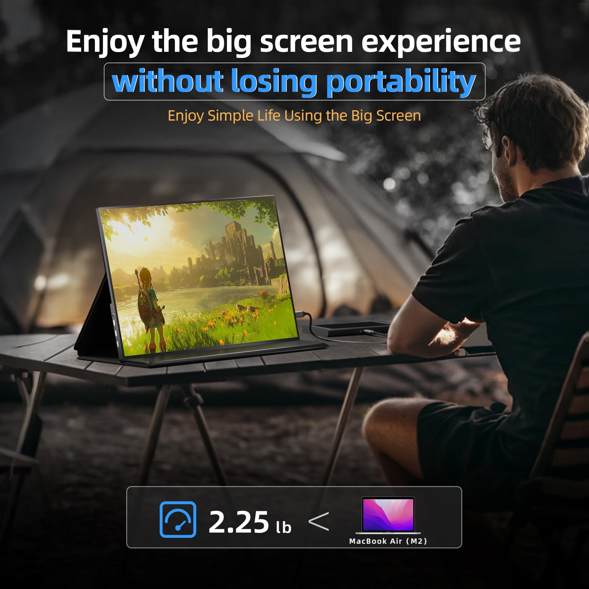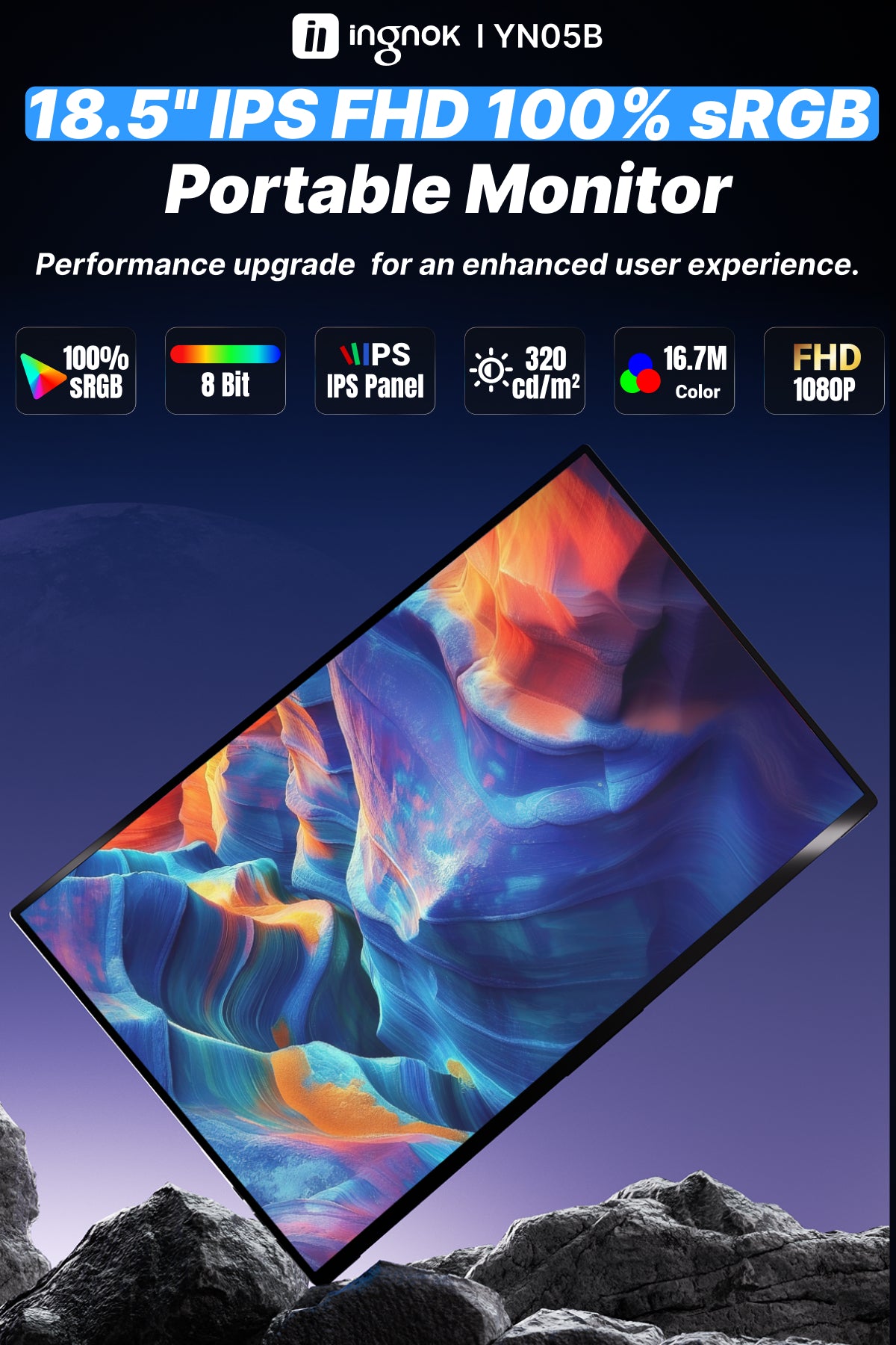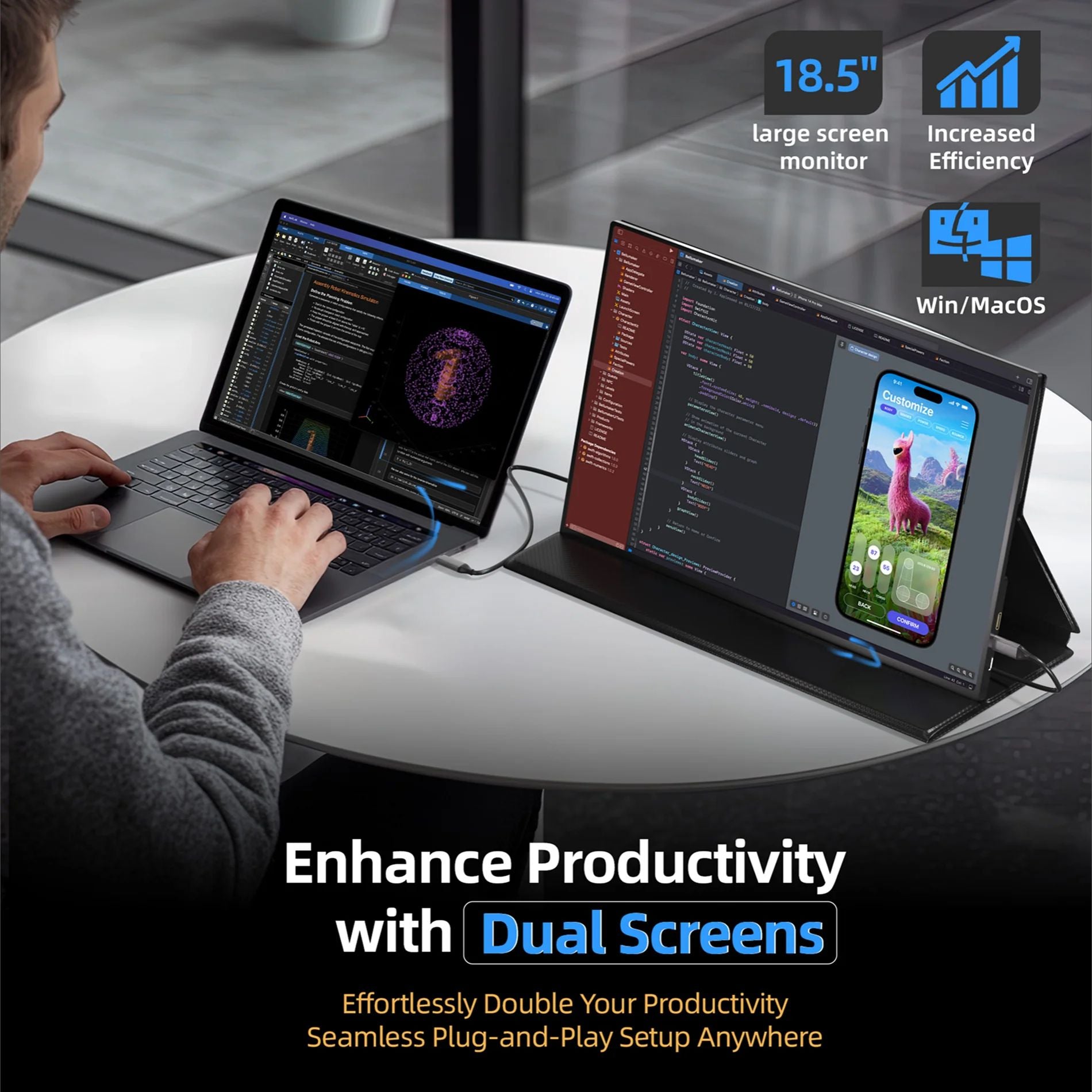 Experience vibrant visuals on an 18.5-inch portable monitor with 1920×1080 resolution and a 1200:1 contrast ratio. Enjoy sharp details, rich colors, and an immersive viewing experience for gaming, movies, and everyday entertainment.