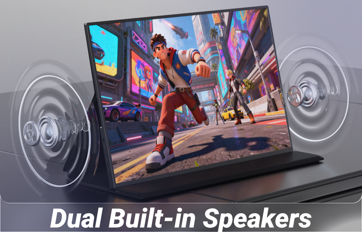 18.5-inch portable monitor brings powerful, immersive 3D stereo sound built right in. Enjoy rich, dynamic audio for movies, games, and music—no external speakers ever needed.
