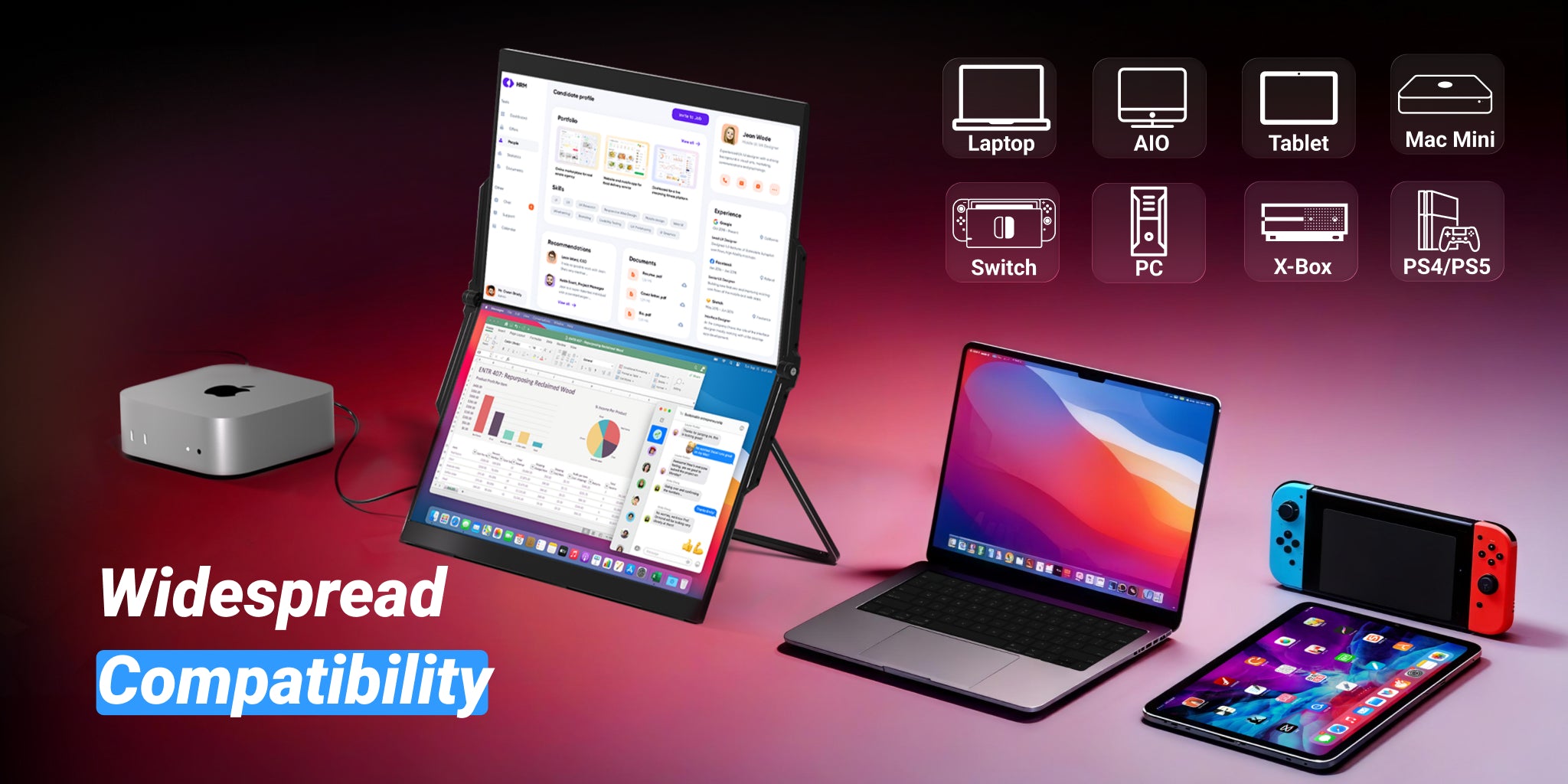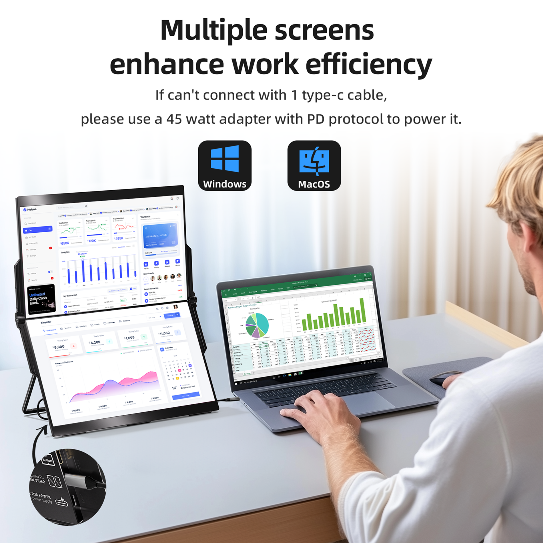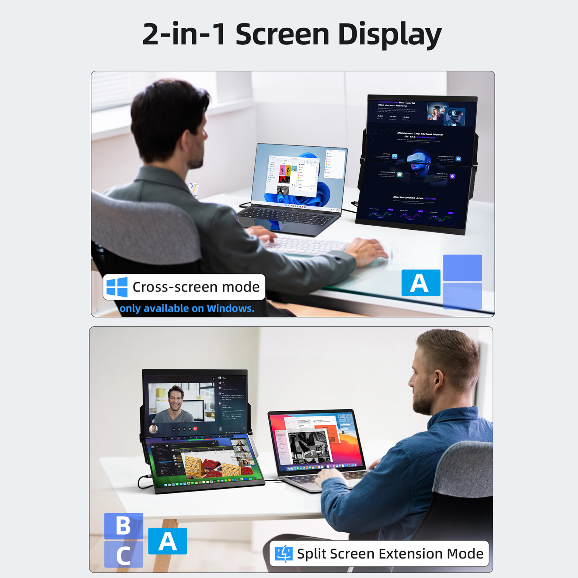This 15.6-inch portable dual-screen solution is your mobile productivity powerhouse. It instantly expands your laptop's display with crisp 1080P clarity, making multitasking on the go effortless and efficient. Perfect for professionals who need a larger, portable workspace.