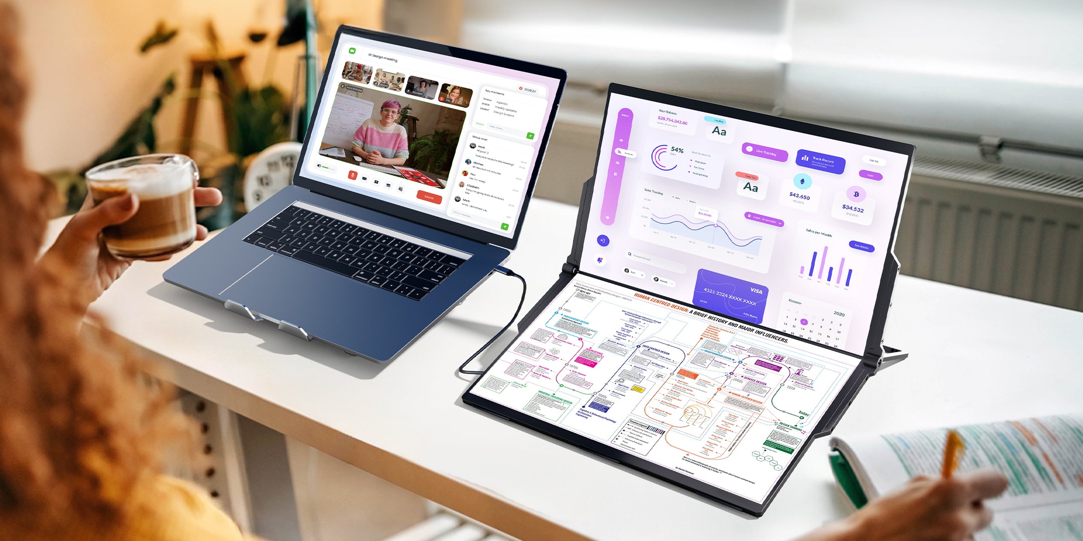 Expand your workspace with a foldable dual-screen design. Code, design, or analyze seamlessly with multi-window collaboration that reduces switching and doubles productivity.