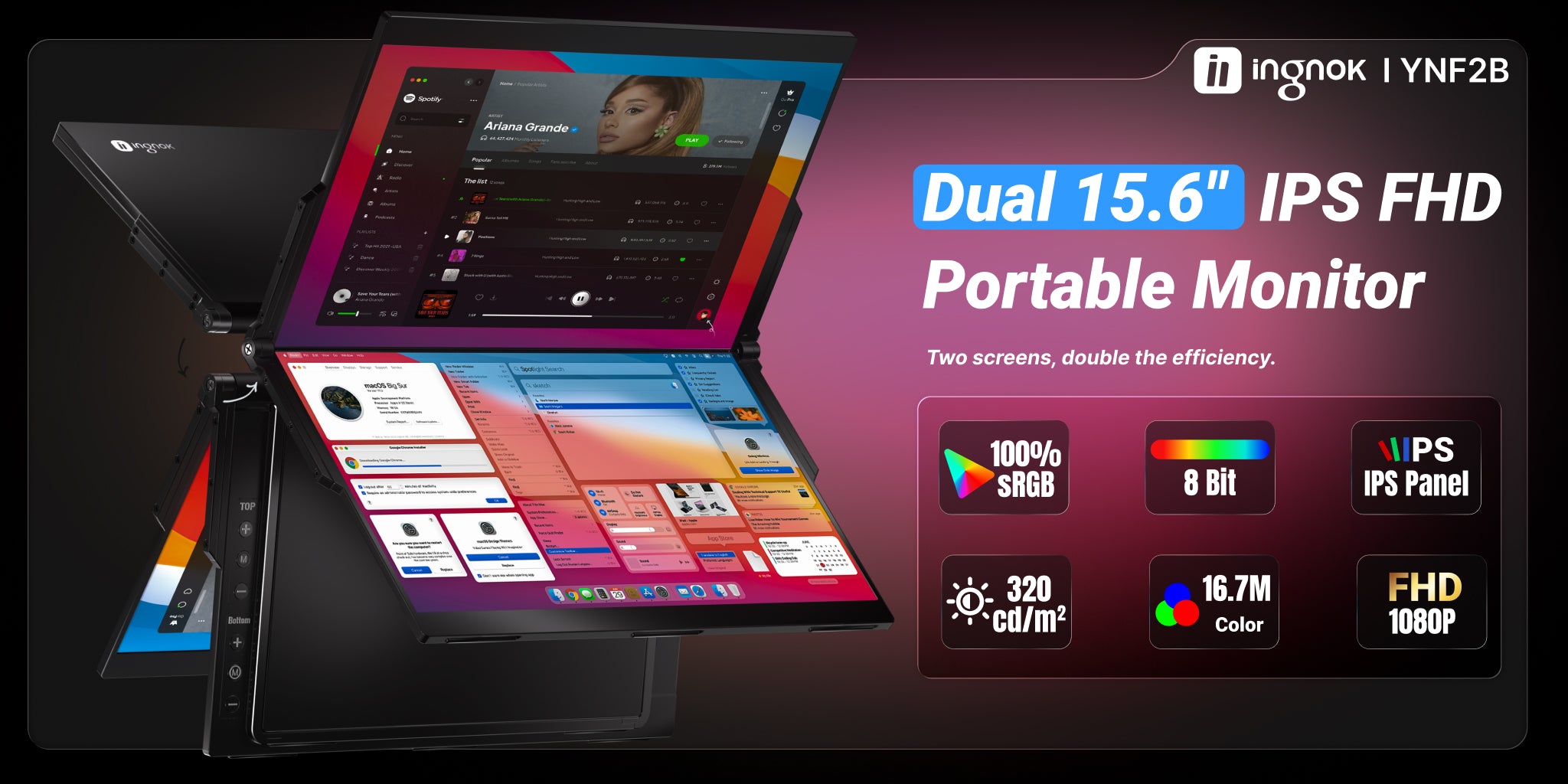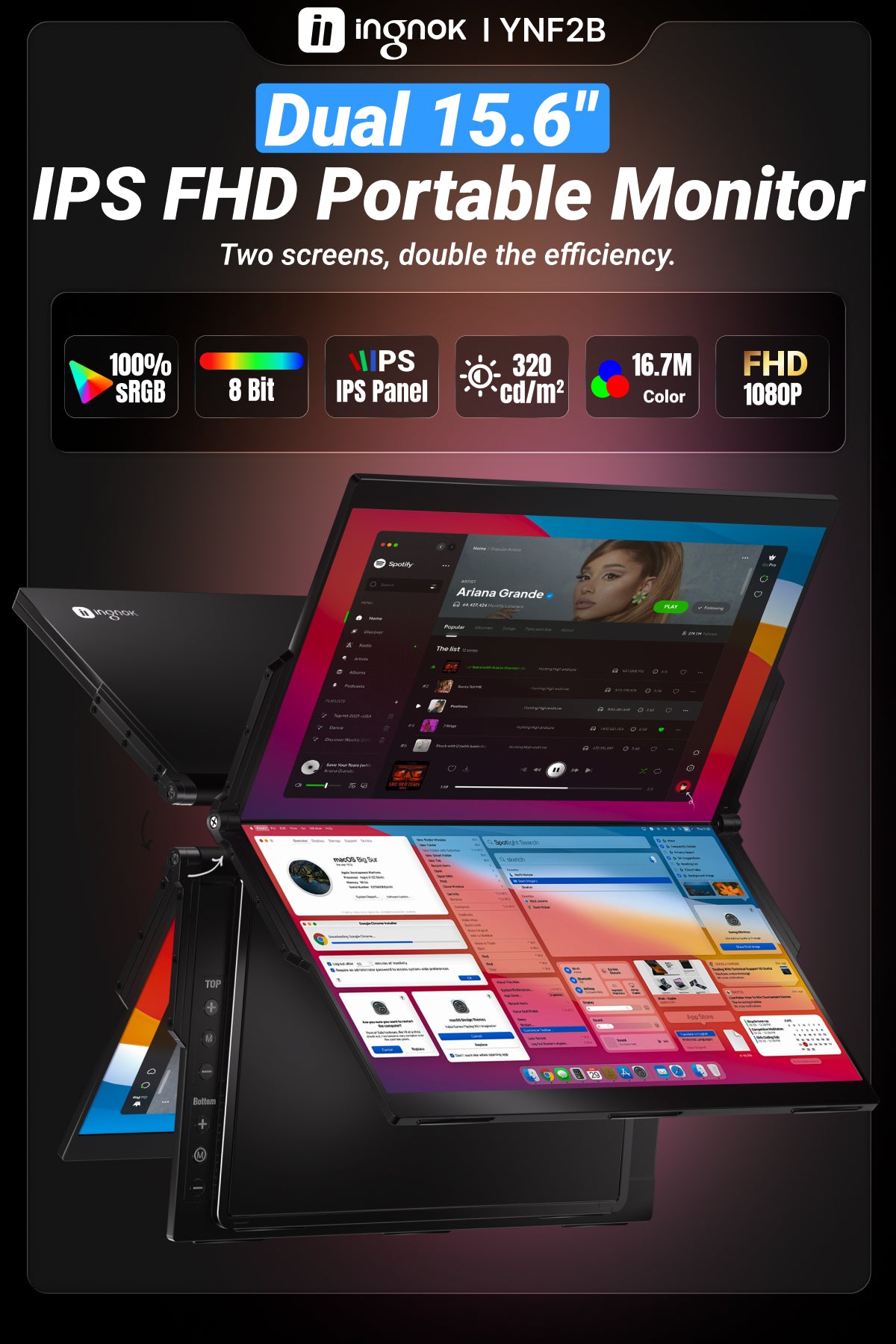 Featuring dual 15.6-inch large displays (equivalent to 21 xinches) with IPS 178° wide viewing technology and ultra-slim bezels, delivering a revolutionary immersive visual experience