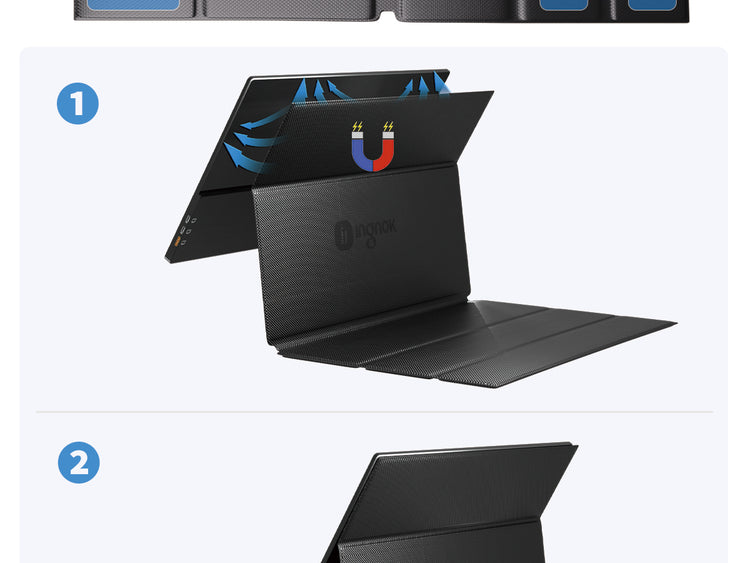 - Effortlessly attach the cover to your Ingnok YN02D/YN02B monitor with a secure magnetic clasp. It seamlessly transitions from a durable protective case to a ready-to-use stand, offering the ultimate convenience in one sleek package.